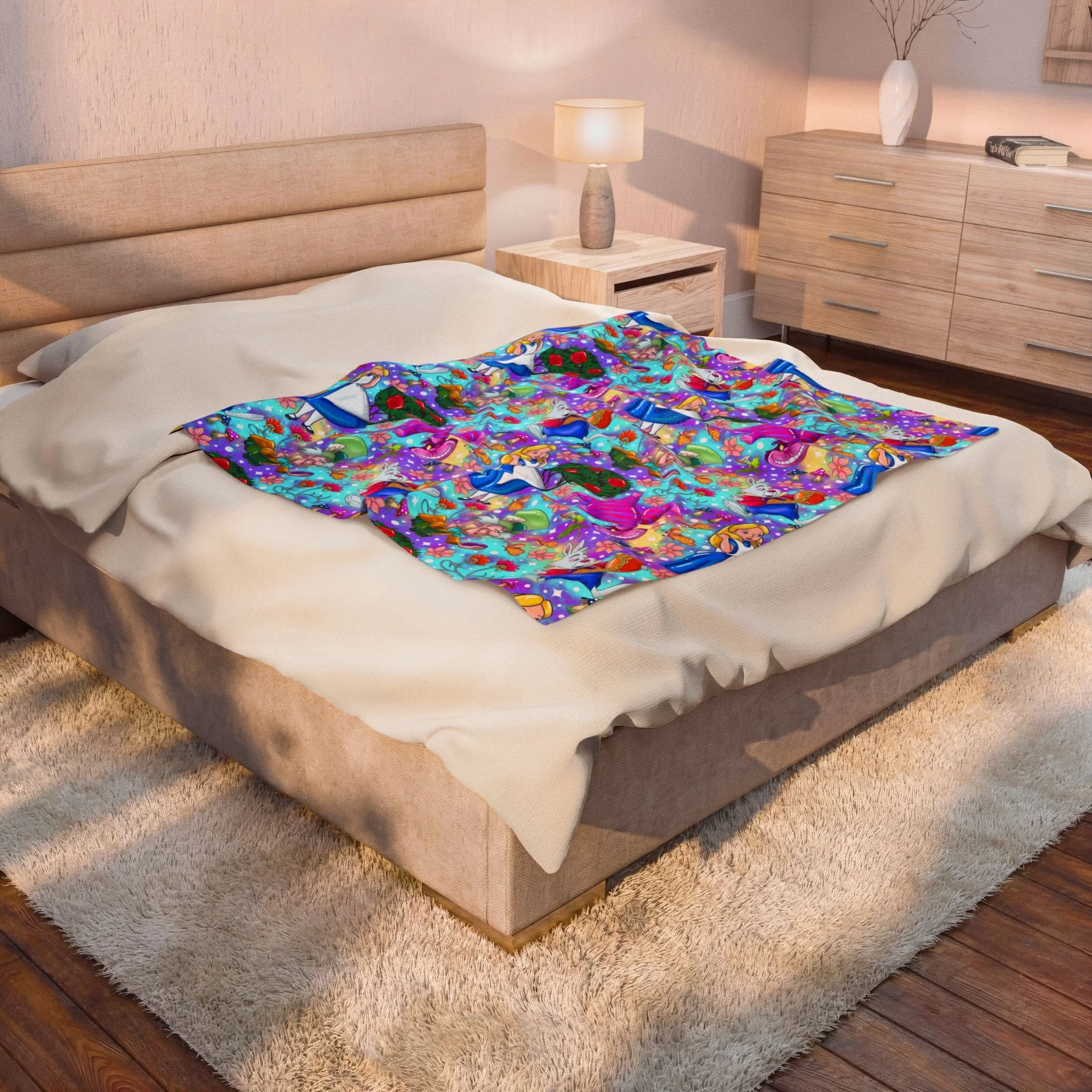 Alice in Wonderland Velveteen Plush Blanket — Colorful Fairytale Throw for Kids & Fans