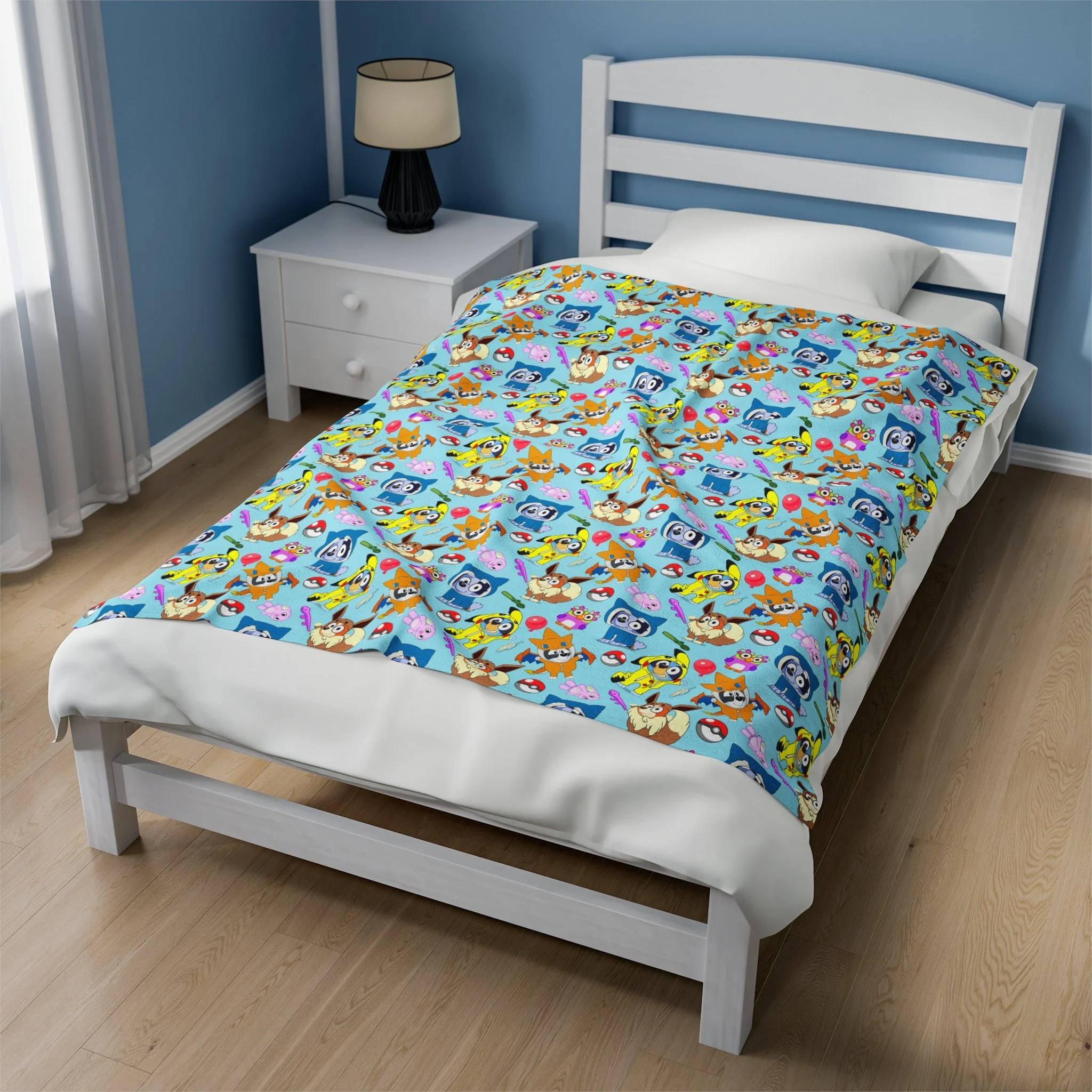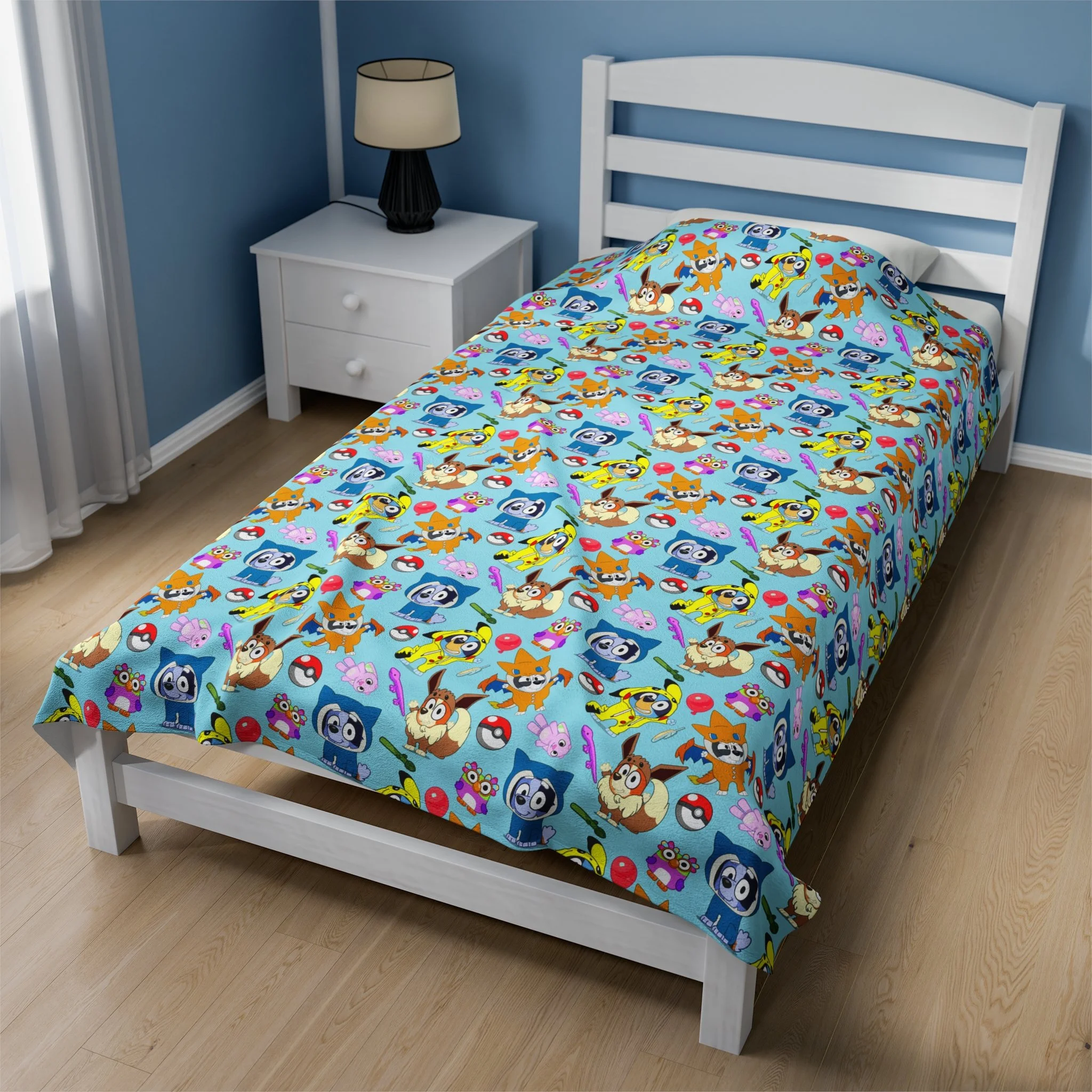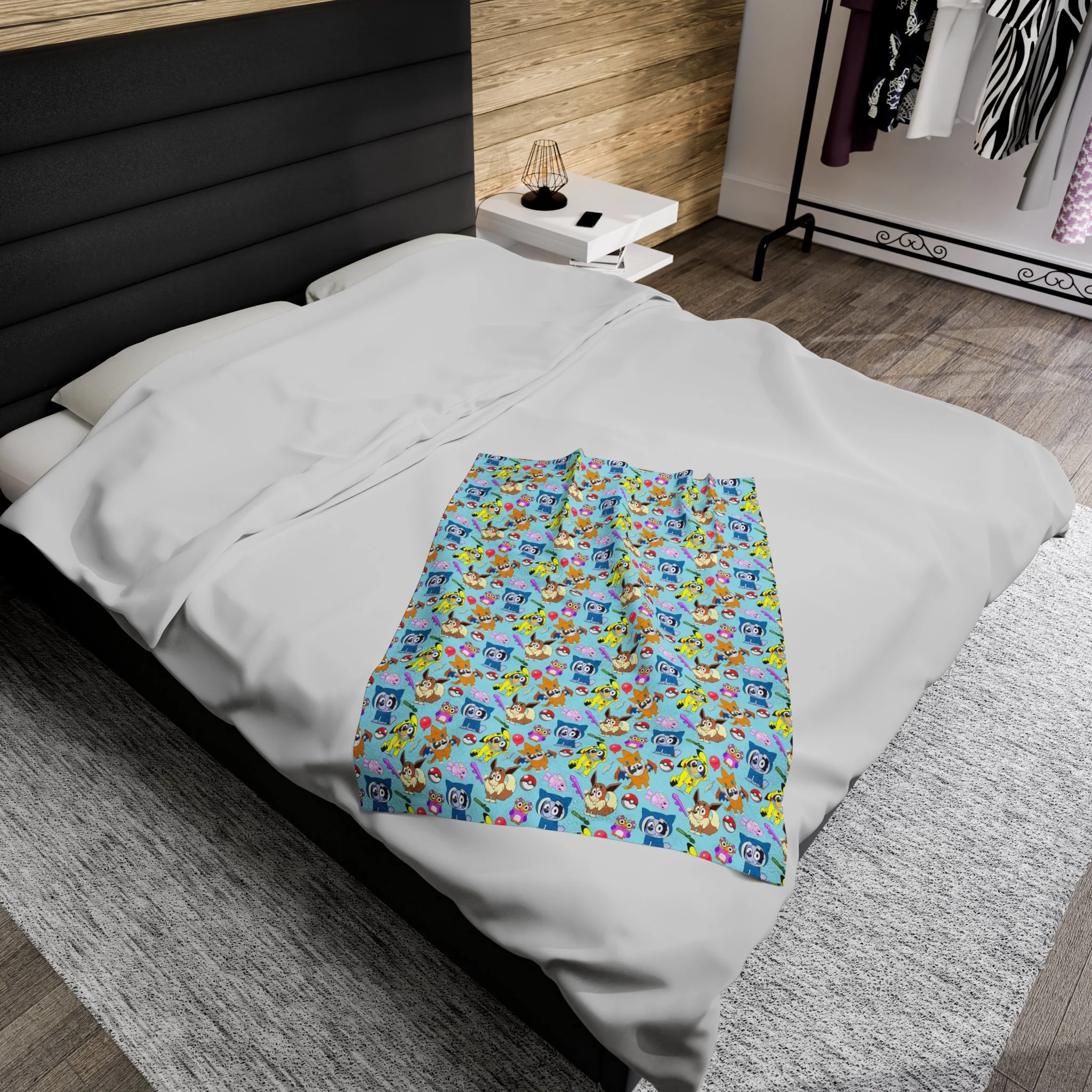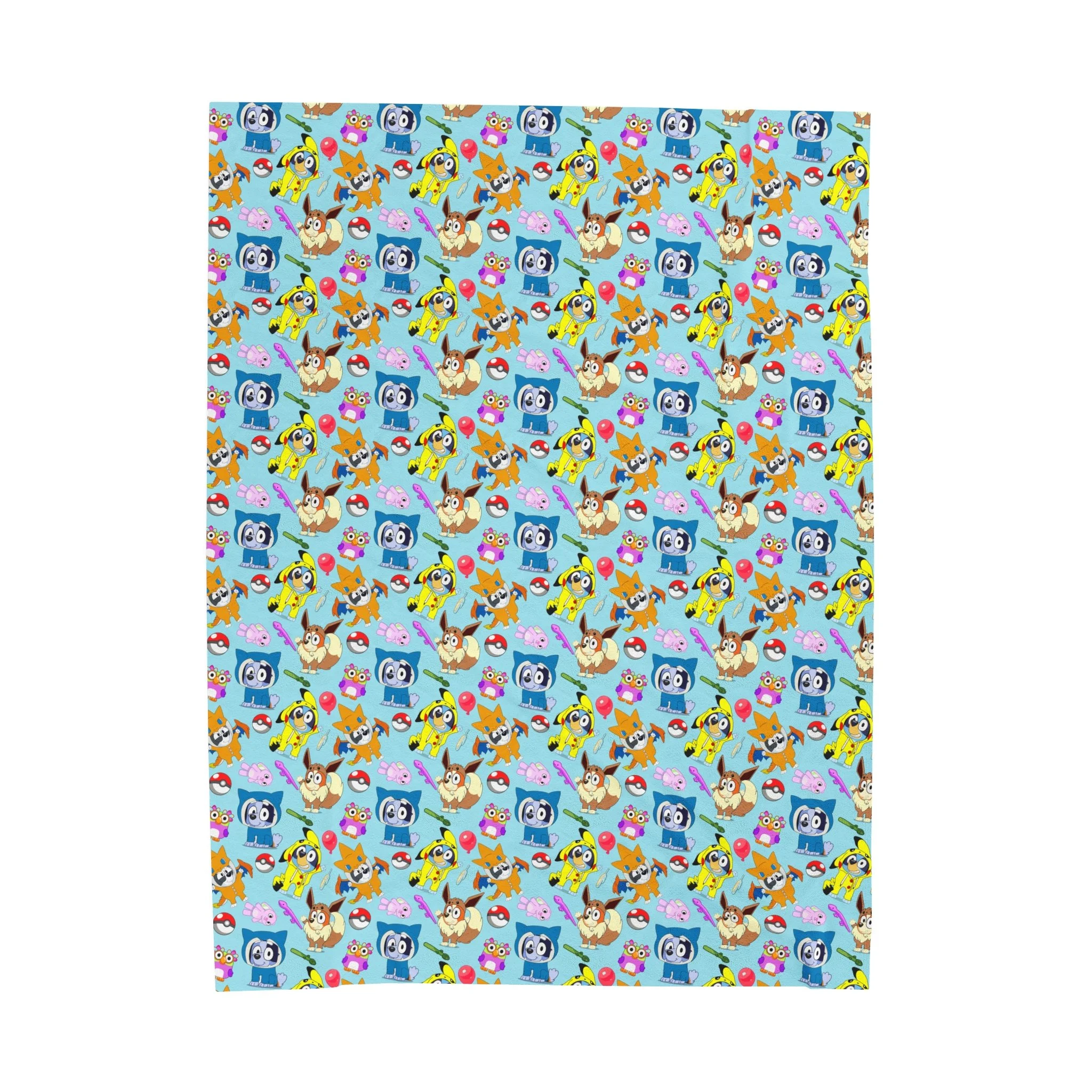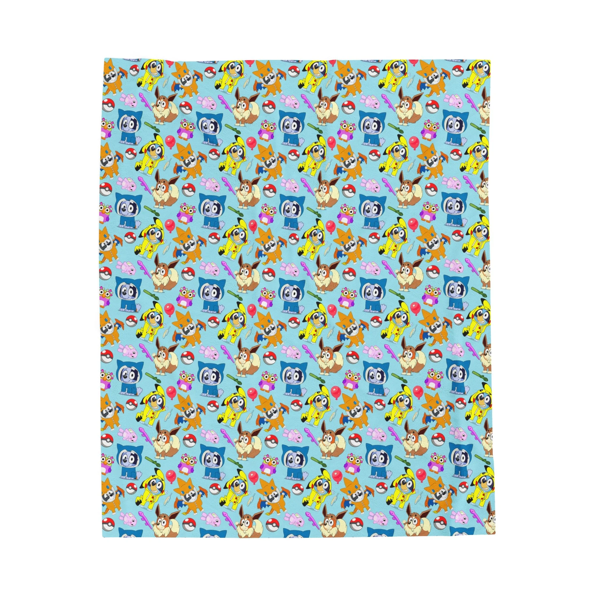 Cozy Velveteen Plush Blanket with Colorful Character Patterns! Blue Doggy dressed up!